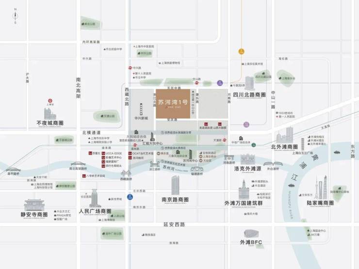 作为静安内环的顶级地段,苏河湾不仅距离上海的老牌地标外滩和南京西路极近,苏州河一河之隔即是外滩源,更是享有一环一横一纵五轨交格局,得天独厚的城市站位和交通肌理,为未来的区域创新,打下了坚实基础.