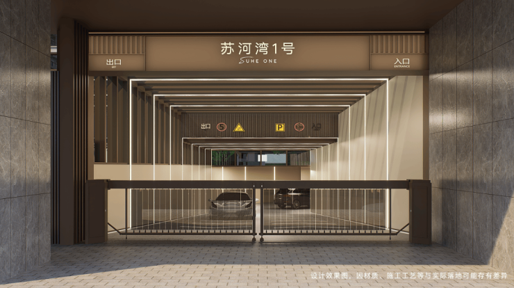 而项目的车库,也加入了近年流行的豪宅“内卷”大战,苏河湾1号的车库在经历外墙材质整体提升之后,辅以铝板,内嵌灯带,颜值和归家品质感均大上台阶.