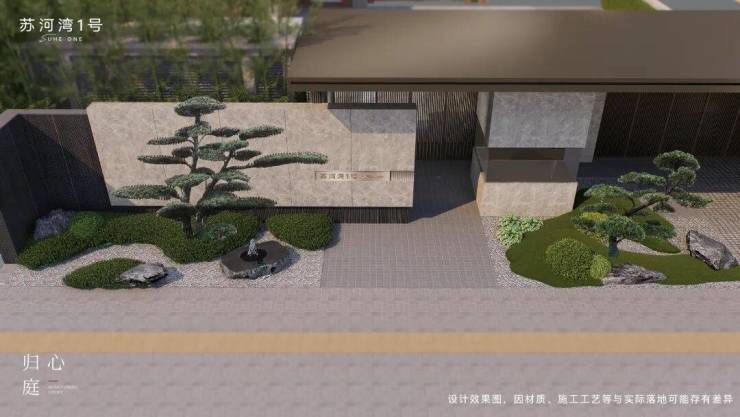 西侧通往会所的浮光庭用料非凡,景观基座选用了世贸金麻石材,植物组团+涌泉水景的应用则给社区更添活力与生机.