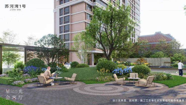除此以外,可能很多人都不知道,静安当下的商品房体量都较小,许多项目甚至缺乏明晰的社区景观概念.有鉴于此,苏河湾1号在改造社区景观上花了大功夫,公区营造了一系列既能提升社区颜值,又能服务业主的实用性场景.诸如社区中央的大美月光庭,以潺潺叠水和各式乔木,通过诗意化的呈现方式,为业主营造出一片宁静、平和的繁花盛景.